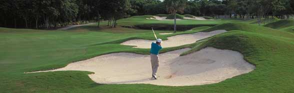 The best course on the Yucatan's coast is the Playacar Golf Course. Recognized as one of the top courses in the world, Playacar Golf Course was designed by renowned architect Robert Van Hagge. Located only a few hundred yards away from the ocean in Playa del Carmen this 18-hole, Par 72 championship golf course is carved out of the dense Mayan jungle. The course features include long narrow fairways surrounded by lush foliage and undulating greens that are protected by very large snow-white sand bunkers. The greens fee for 18 holes is $150 and that includes a cart, drinks and snacks. $90 twilight rates start after 2pm. Golf clubs are available for rent for $30. For additional information, seasonal rates and reservations checkout the following websites:
